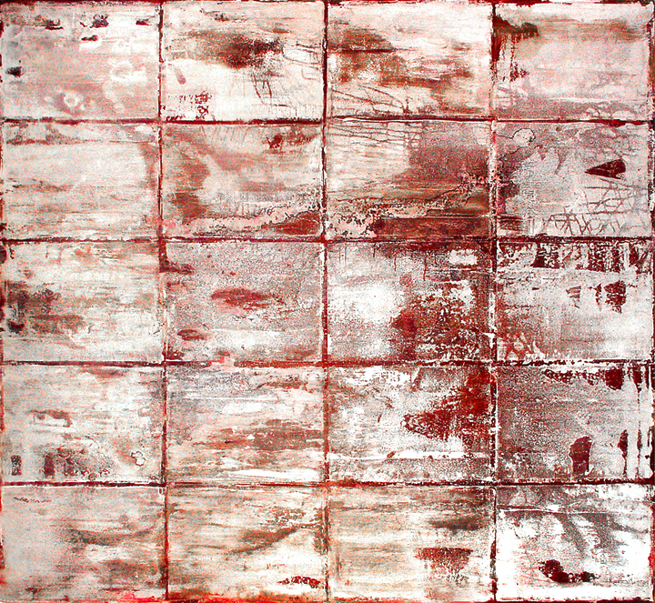 Red and White Grid, 66x72 inches, mixed media on canvas, 2006
