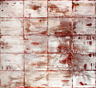 Red and White Grid, 66x72 inches, mixed mediums on canvas, 2006